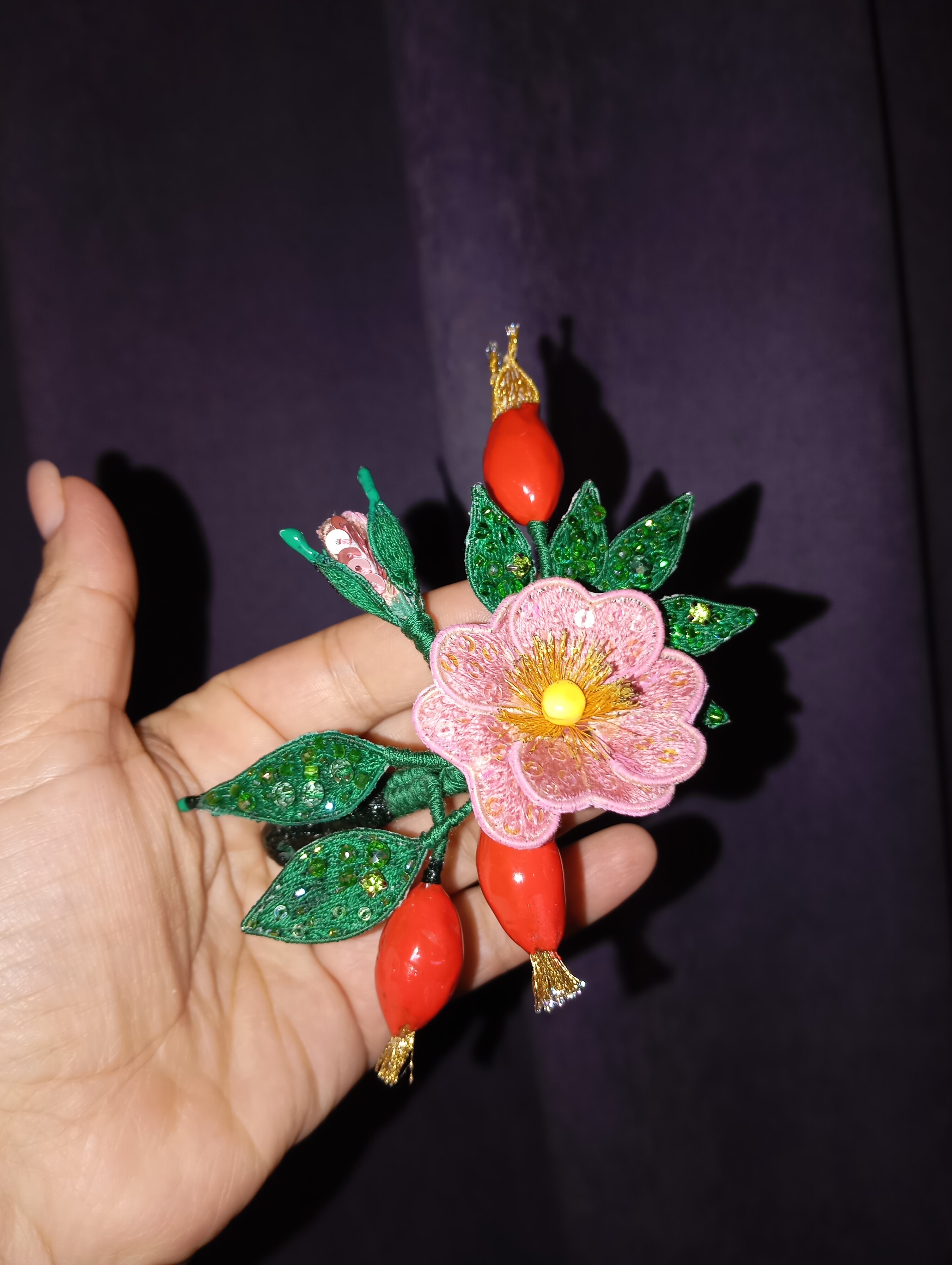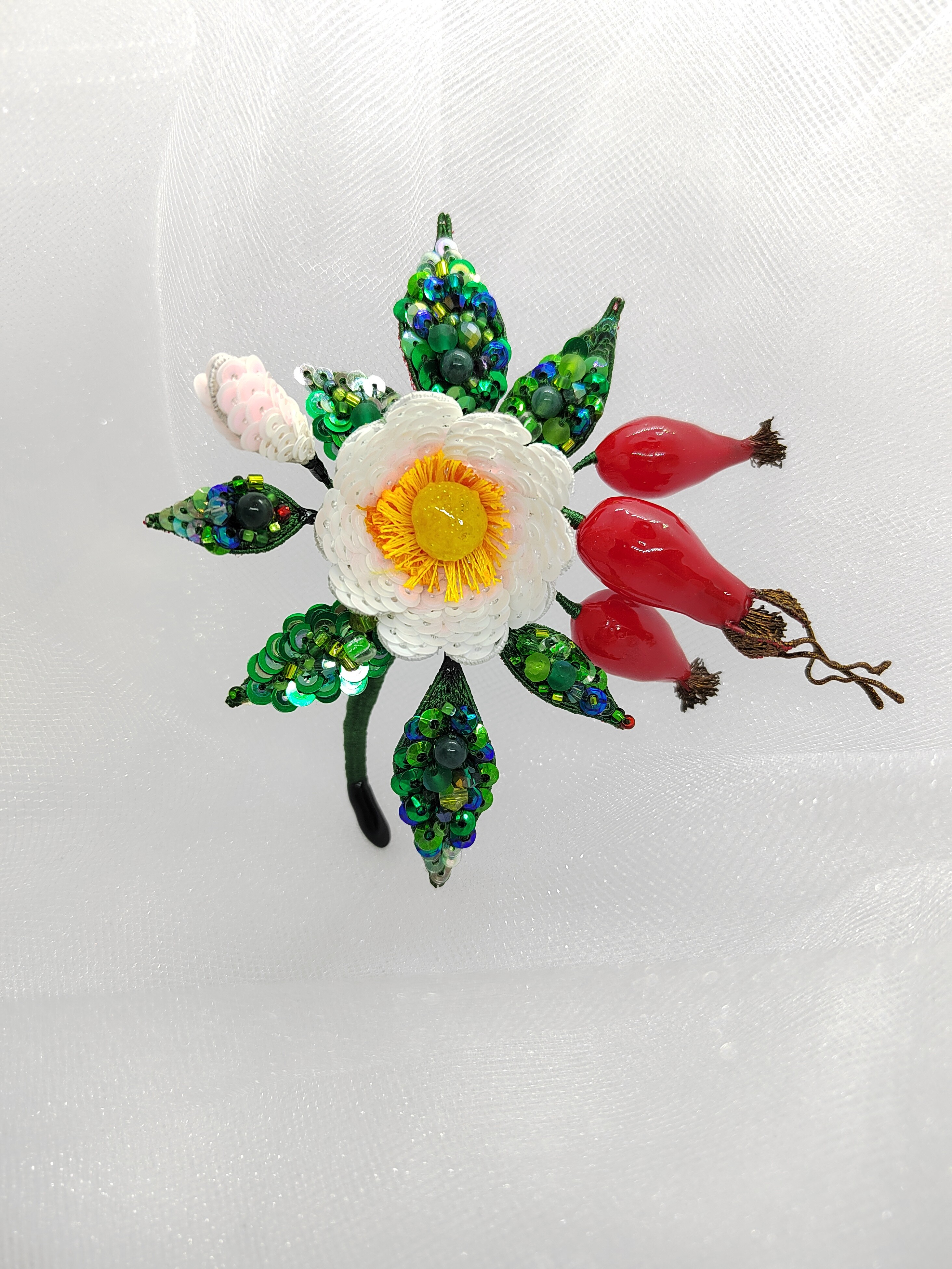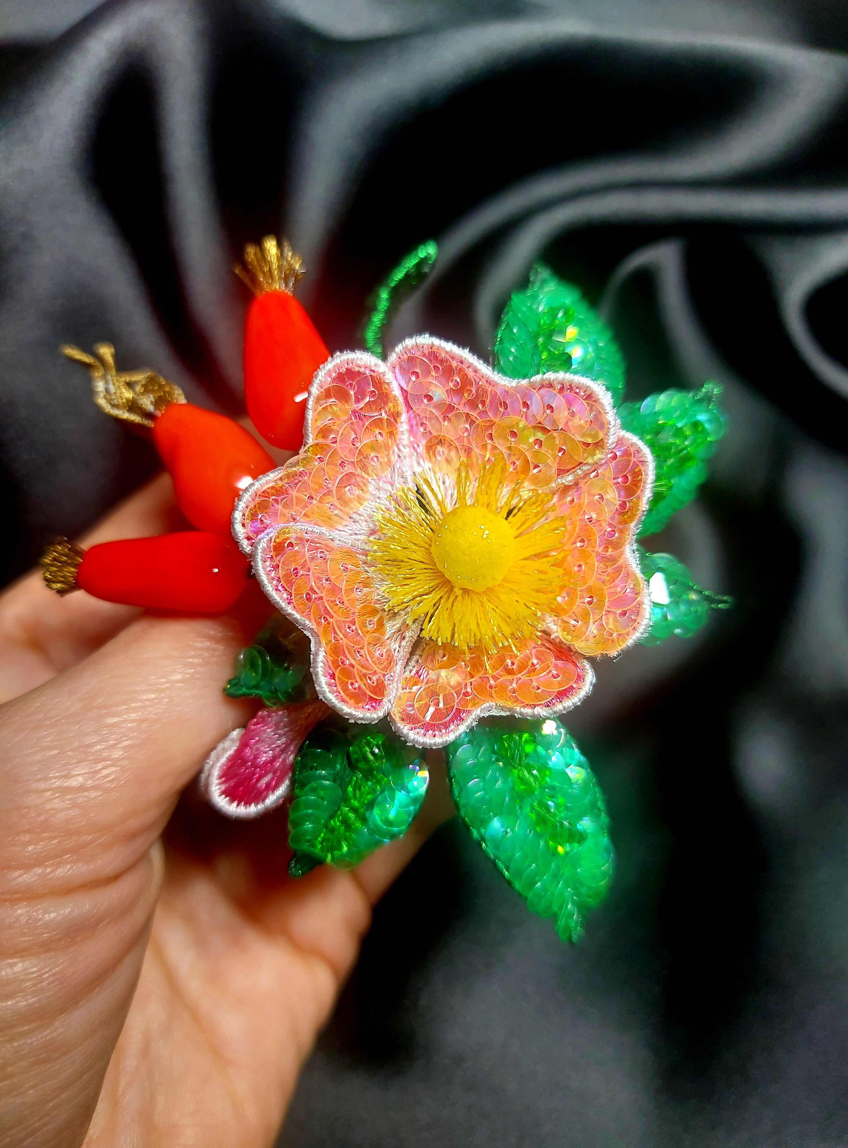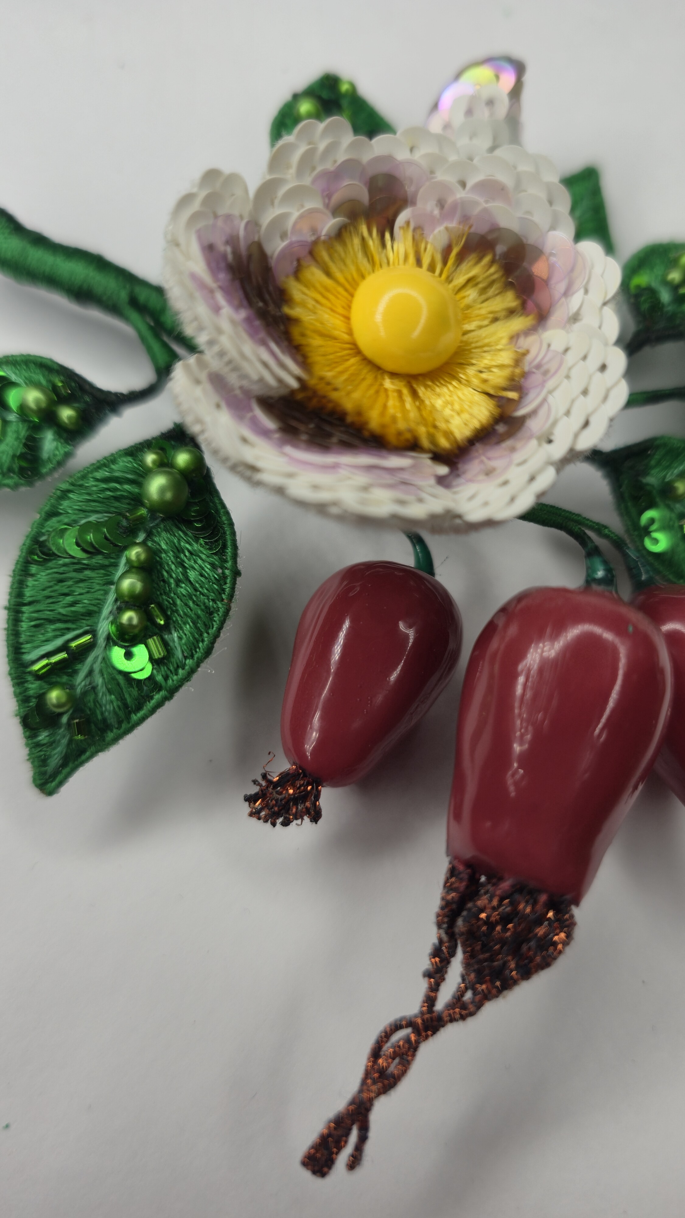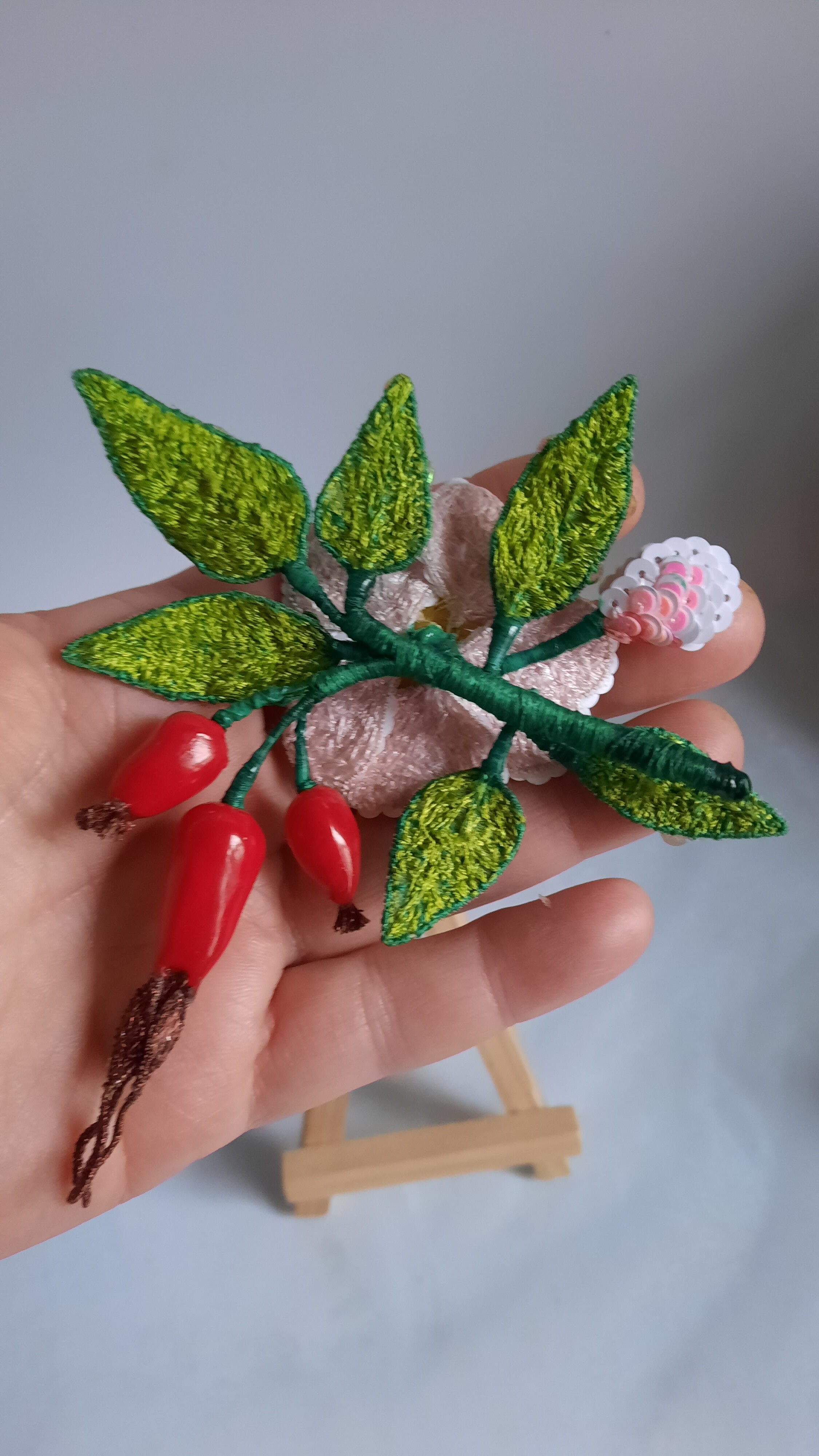 Ура! Брошь Дикий шиповник закончена! ❤ Очень гармоничная вышла веточка. Интересно было создавать ягоды, подбирать пайетки для красивого градиента цвета в цветке, смешивать краски, чтоб добиться нужного оттенка для ягод, замирать от восторга, когда получается желаемое, постепенно присоединять все детали к друг другу и радоваться преображению этого чуда! Благодарю за подробные и эстетичные уроки с приятным музыкальным сопровождением и за то, что полученные знания можно легко интегрировать в свои авторские задумки. Ваши уроки открывают безграничные творческие возможности �