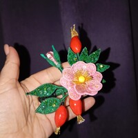 Спасибо Ангелине за возможность создать такую изумительную в своей натуральности брошь! Шиповник-просто чудо! Не устаю удивляться креативу Ангелины и благодарю за новые " секретики" в технологии создания ягод и серединки с тычинками)