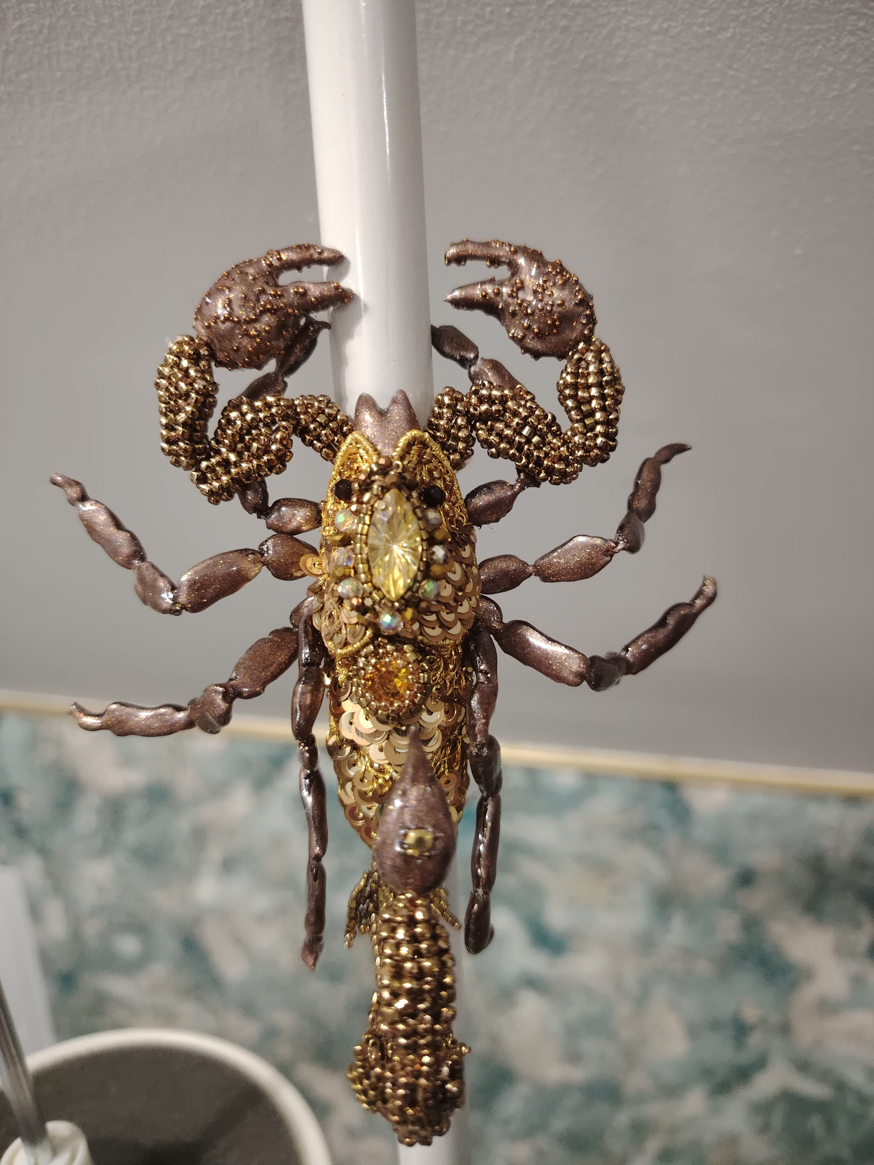 Ангелина спасибо за такой сложный но безумно интересный мастер класс, Скорпион. Он получается настолько реальный, что на последних этапах ловила себя на мысли что непроизвольно пальцы немели от страха, как будто в руках настоящий скорпион