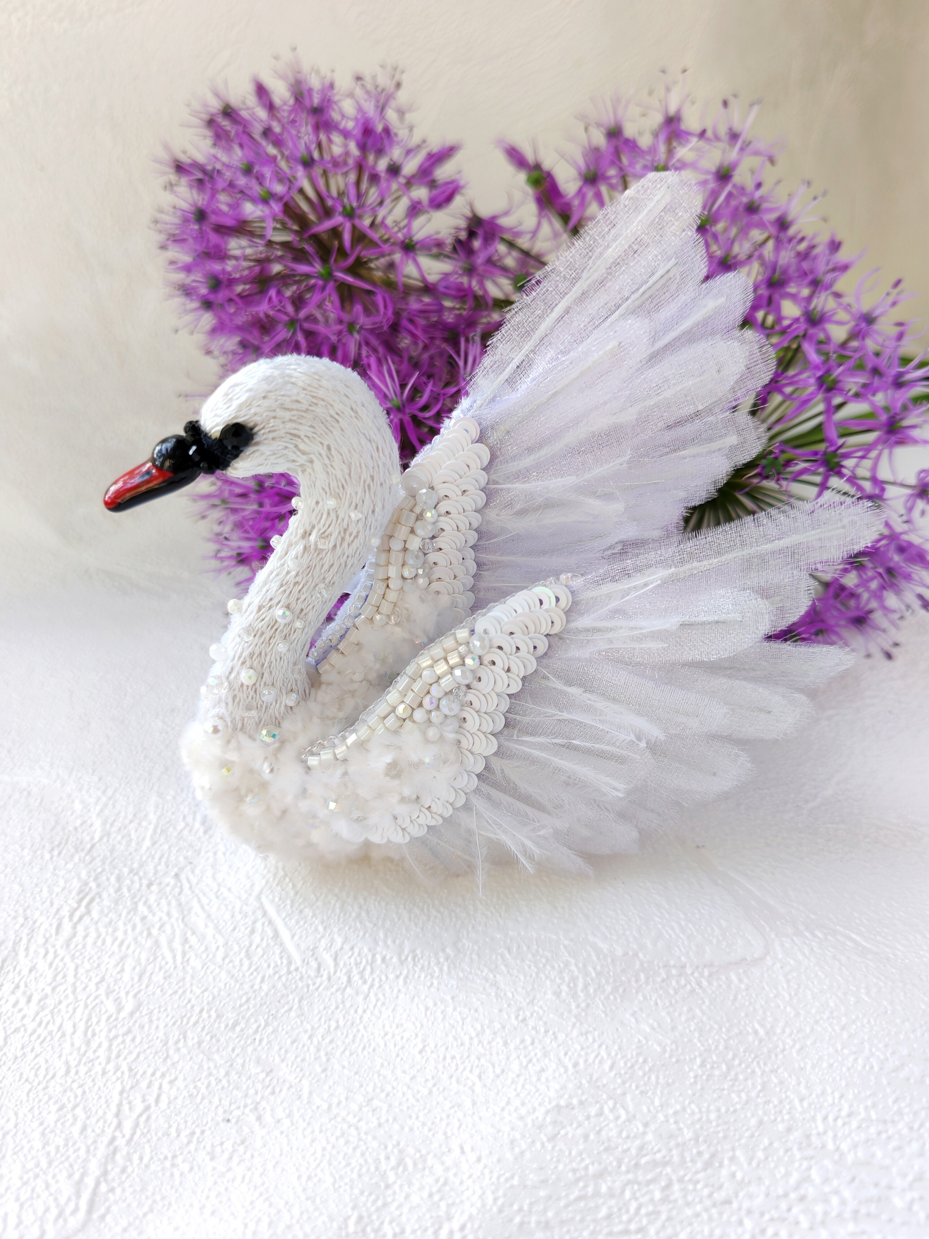 Моя новая брошь готова, и она получилась просто волшебной – настоящая Царевна-лебедь, излучающая нежность и грацию.
